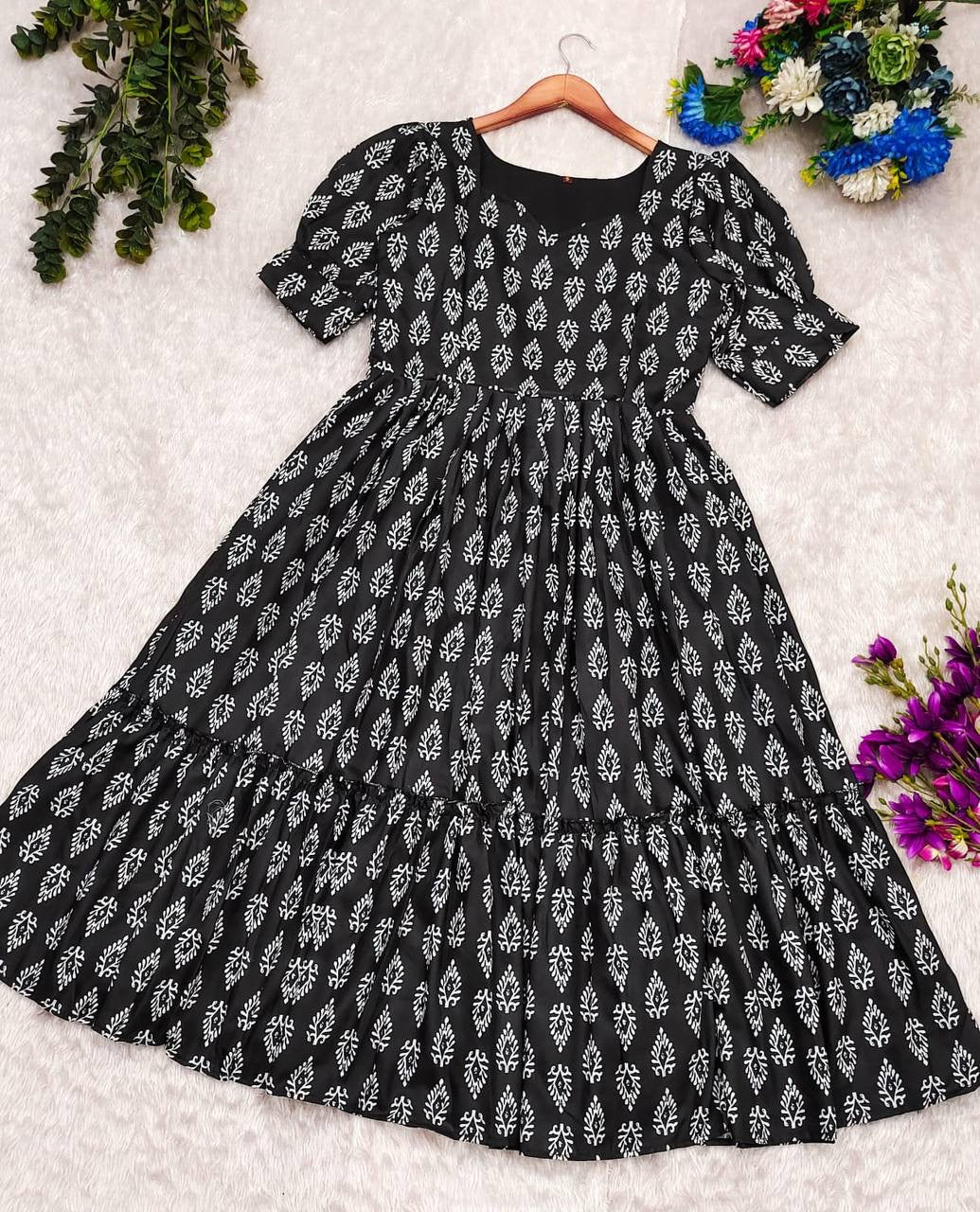 A Timeless Beauty Which Holds Elegance And Class a Perfect Attire For Any Casual To Formal Outing The Unique Pattern Adds To The Attention And Frill Down There And The Vibrant Vibe 🥰